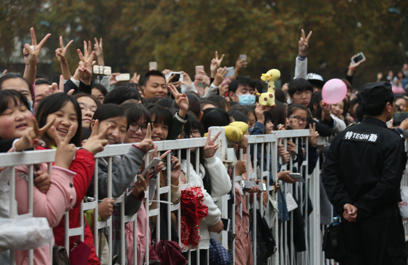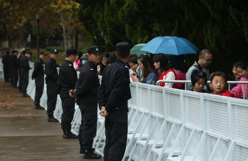 学院高度重视此次活动安保等相关工作,并进行了周密部署。党委书记、院长陈国祥指示一定要确保活动安全有序开展。11月7日上午,金松副院长到活动现场察看并指挥安保、交通工作情况。院保卫处积极与活动主办方对接,提前在活动现场设置路障和栏杆分流人群,同时在活动现场增配安保人员,并在学院南门和西门采取限行措施。当天人潮涌动,虽然出现极少数粉丝翻越围栏等危险举动,但总体情况平稳,现场秩序井然,圆满完成录制工作。