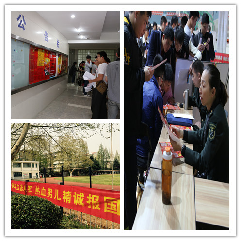 自今年4月10日起,院人武部就启动了大学生征兵宣传发动工作。4月11日,利用举办2015届毕业生校园招聘会的契机,邀请区人武部工作人员来院设立征兵宣传咨询台,宣传大学生征兵政策。另外,还采取了悬挂横幅、发放传单、粘贴海报、摆放展板、微信推送等方式,深入开展大学生征兵宣传,有效激发了同学们爱军尚武、献身国防的参军热情,在校园内营造了大学生应征入伍的浓厚氛围,先后有32名大学生选择学院所在地应征报名。在认真做好大学生入伍政策宣传、咨询、报名、学费代偿、保留学籍等服务工作的同时,还积极与玄武区征兵办、孝陵卫派出所密切配合,顺利完成了应征大学生的体检、政审、复检、定兵、送兵等工作。尤其暑假期间还安排好专人值班,全力做好征兵服务工作。