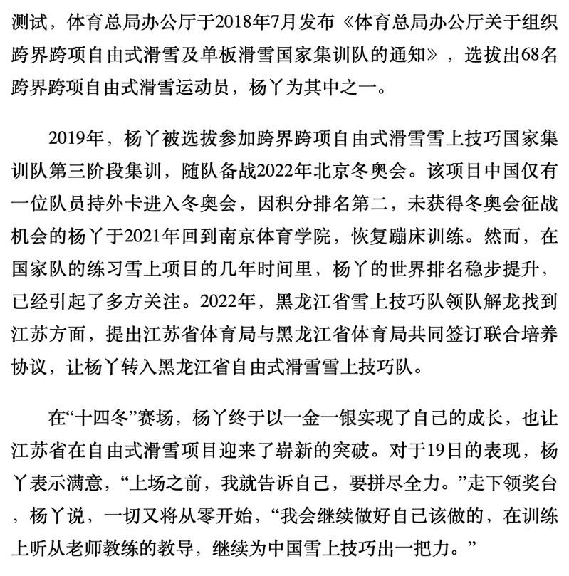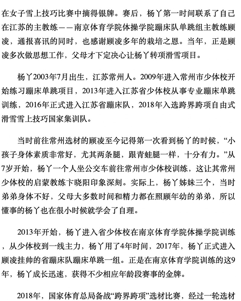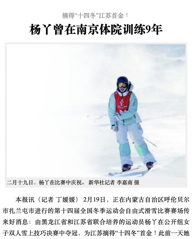 【南京日报】摘得“十四冬”江苏首金!杨丫曾在南京体院训练9年