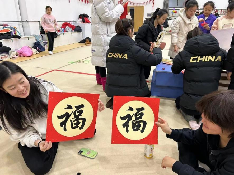 艺术体操队外教体验拓印福字