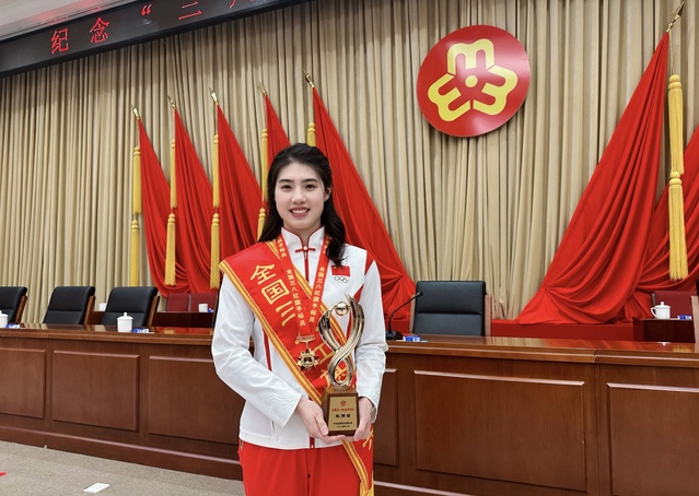 受表彰代表张雨霏在发言中表示,将牢记习近平总书记的谆谆嘱托, 争做伟大事业的建设者、文明风尚的倡导者、敢于追梦的奋斗者, 立足本职岗位, 发挥“全国三八红旗手标兵”模范带头作用, 走好冠军之路,并带领更多的青少年爱上体育运动,用自己的专注和努力,展现“使命在肩 奋斗有我”的巾帼风采,为自己更大的梦想奋力拼搏,让体育精神成为自己青春的亮丽底色。