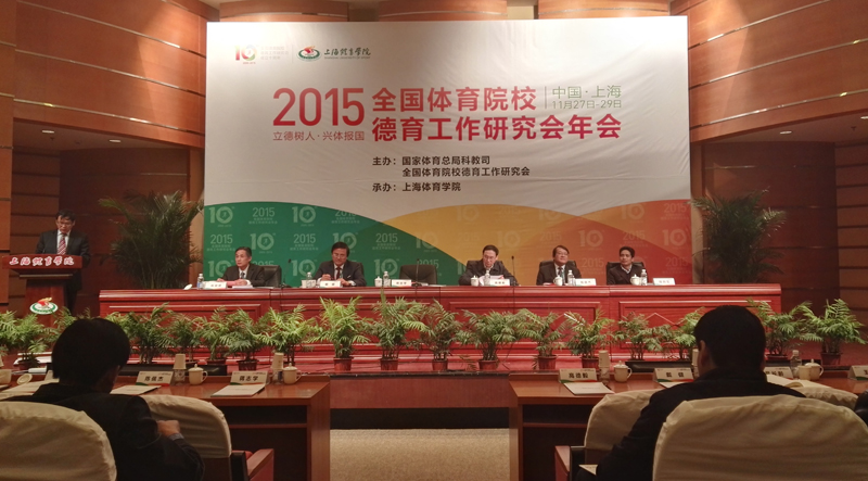 11月28-29日,2015年全国体育院校德育工作研究会年会在上海体育学院隆重召开。上海市副市长翁铁慧,国家体育总局科教司司长蒋志学,上海市教卫工作党委副书记、市教卫副主任高德毅等领导嘉宾出席会议,全国十五所体育院校的150余人参加了会议。我院纪委书记李江率学工部、宣传部、社会科学部、研究生部、团委和辅导员代表共10人参加了本次会议。