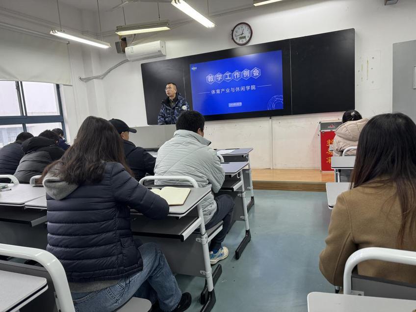 3月5日,体育产业与休闲学院在仙林401教室召开新学期全院教师教学工作大会,学院领导及全体教师参会,会议由院党总支书记王进主持。