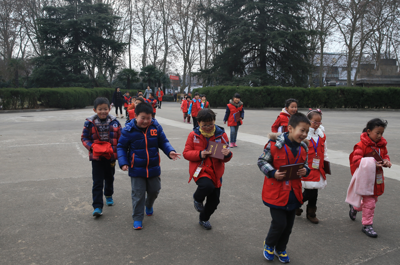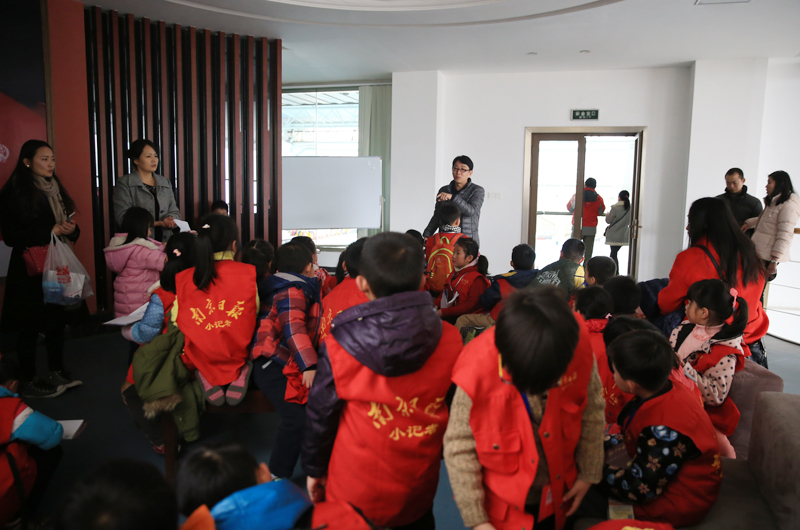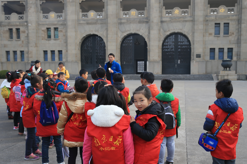 党委宣传部副部长许立俊为小记者讲解中央体育馆和参观注意事项