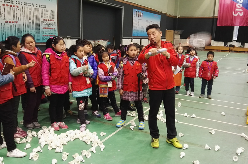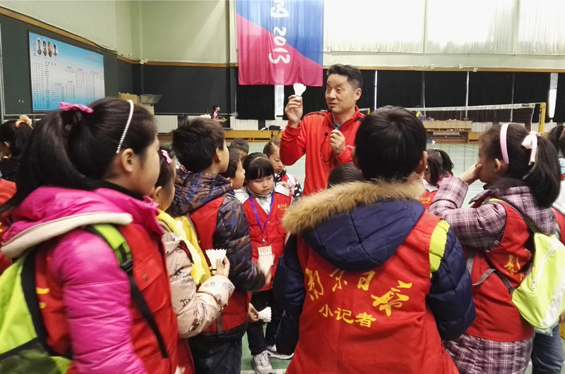 羽毛球教练为小记者讲解羽毛球相关知识
