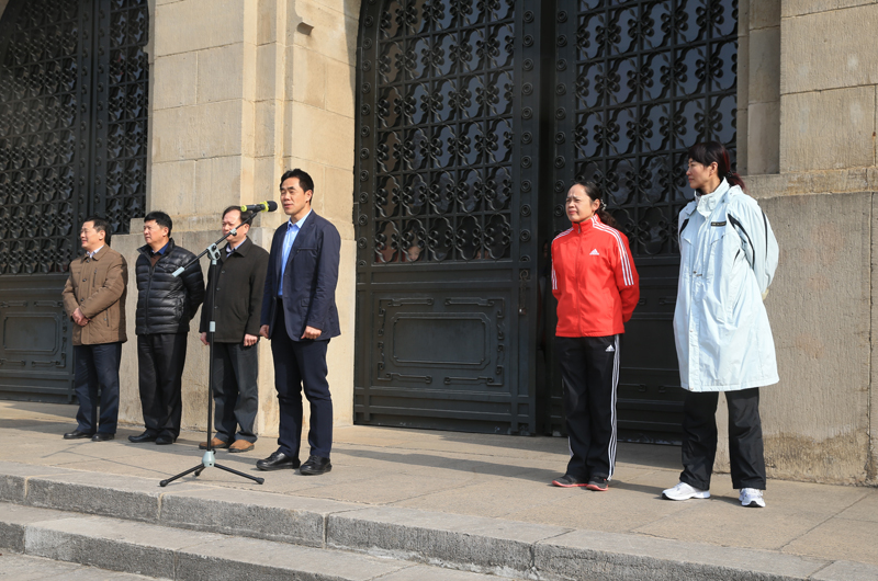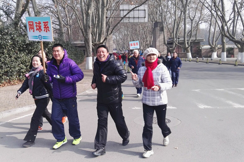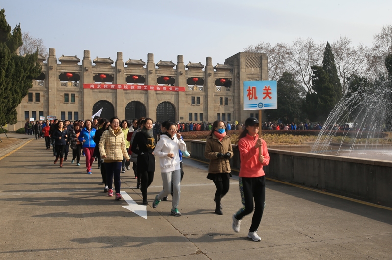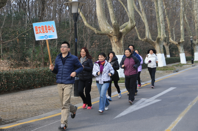 当天12:45,院工会全体会员齐聚西司令台前面的广场。党委书记、院长陈国祥,副院长史国生,纪委书记李江,副院长蒋宏伟,副院长金松,副院长肖爱华出席了起跑仪式。党委书记、院长陈国祥发表动员讲话和2016年新年贺词,并为长跑活动发令。十几支队伍依次沿着“西司令台---灵谷寺圆盘---西司令台”顺利跑完了全部路线。
