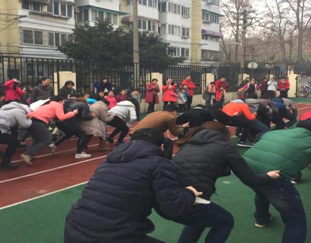 跳蚤市场开市之前,幼儿园组织了亲子趣味运动比赛,有亲子跳绳,家长比赛接力跳绳和学做毛毛虫走路等项目,孩子们为自己的爸爸妈妈呐喊加油,家长们在孩子们面前发扬运动员努力拼搏的精神,享受着美好亲子活动的乐趣。