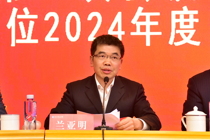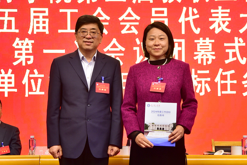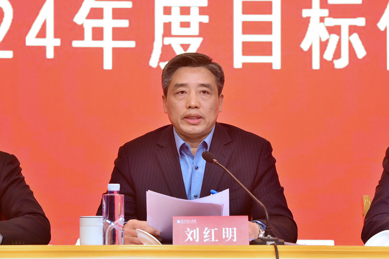 党委副书记、校长杨国庆在闭幕式上接受各单位、各部门负责人递交的2024年度目标任务书