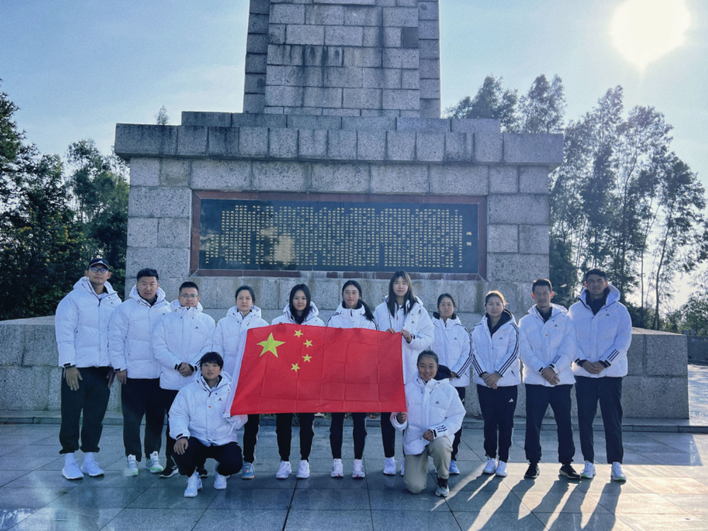 图为蒋新月教练(左一)与国家队集训运动员合影