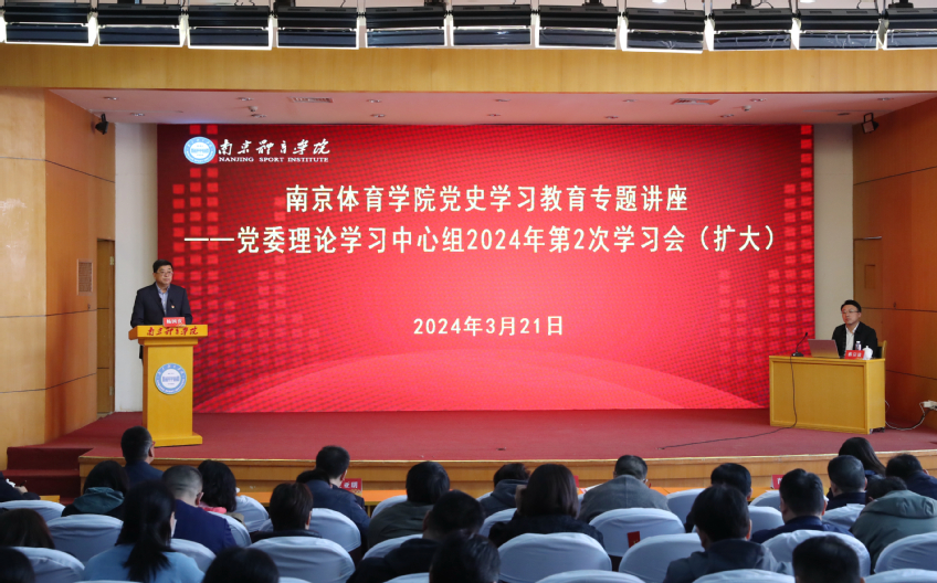 3月21日上午,PA视讯在图书馆报告厅举行党史学习教育专题讲座暨党委理论学习中心组2024年第二次学习(扩大)会,邀请江苏省委党校党史党建教研部副教授、硕士生导师、政治学博士蔡宗溢讲授党史学习教育专题讲座。党委副书记、校长杨国庆主持会议。