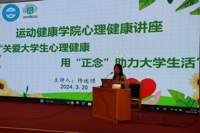 为深入学习贯彻党的二十大精神和学校第九次党代会精神,全面落实习近平总书记关于教育和青年工作的重要指示精神,进一步发挥“心理育人”在PA视讯思想政治教育工作中的重要推动力量及培养学生健全人格体系的有效途径,全面培育学生健康心态和积极心理品质,共同营造团结互助、人际和谐的校园氛围,3月20日运动健康学院举办了关爱大学生心理健康,用“正念”助力大学生活”心理健康讲座活动,讲座由运动健康学院康复治疗系侍述璟老师主讲。