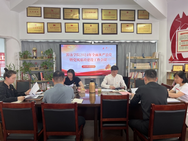 3月22日下午,游泳学院在跳水花游馆二楼会议室召开2024年全面从严治党暨党风廉政建设工作会议。学院全体管理干部参加会议。会议由学院党总支书记骆晓娟主持。