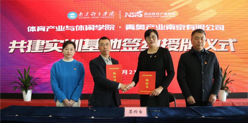 会上,双方就2024年产教融合基地建设的重点工作进行了充分研讨,对后续培训体系建构、课程与教材建设、学生实训、专业导师授课等一系列工作进行了部署安排,并签订了新一轮实训基地共建协议。会后,体育产业与休闲学院教师还应邀实地调研参观了青奥产业公司各场馆。