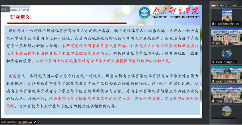 参加预答辩的研究生从选题背景、研究意义、研究创新性、研究设计、研究结果等方面进行了详细汇报,预答辩评委逐一点评和提问,并对论文的进一步完善提出了具体建议,同学们就专家所提问题做出认真回答,并对修改意见和建议做了详细记录。
