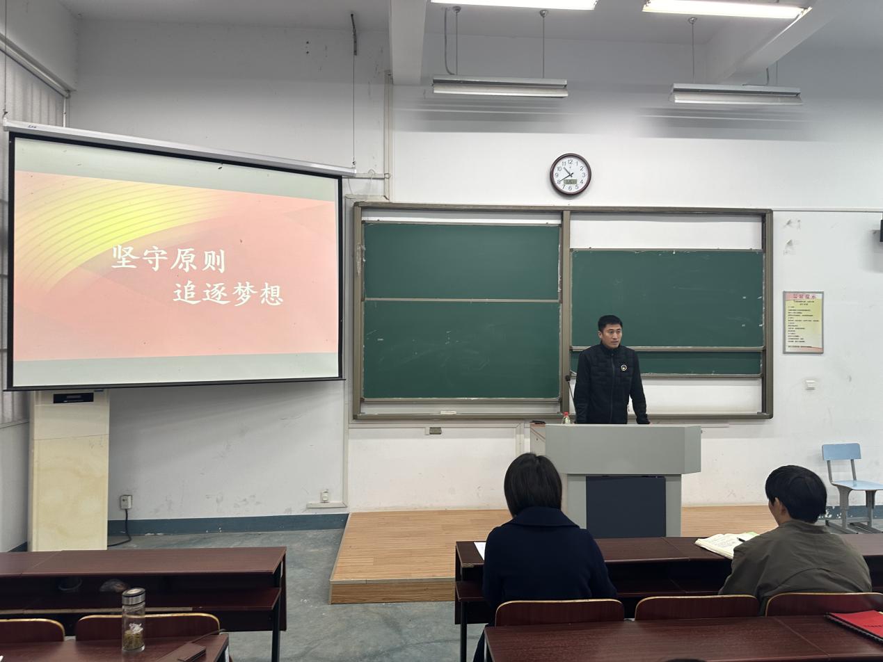 党员代表马宁老师在会上作题为《坚守原则,追逐梦想》的主题演讲,分享了他如何坚守入党初心成就了从一名普通教师到国际足球裁判员的奋斗历程,以自身经历生动诠释了严守党章党规党纪是是每位党员应当坚持的日常行为准则。