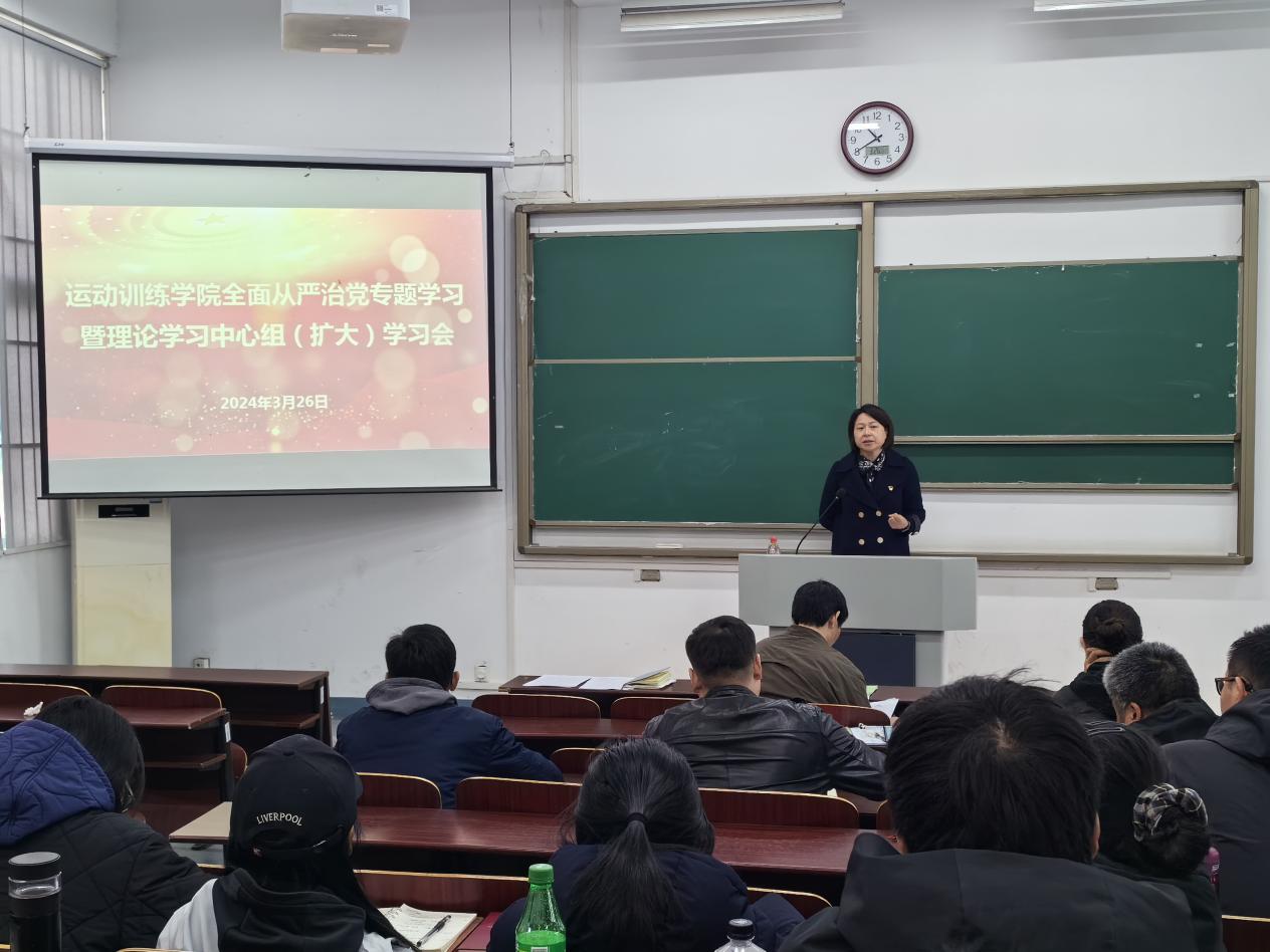 3月26日,运动训练学院于仙林校区教学楼218教室召开全面从严治党专题学习暨理论学习中心组学习(扩大)会。会议由学院党总支书记葛见珠主持。学院全体教师参加学习。