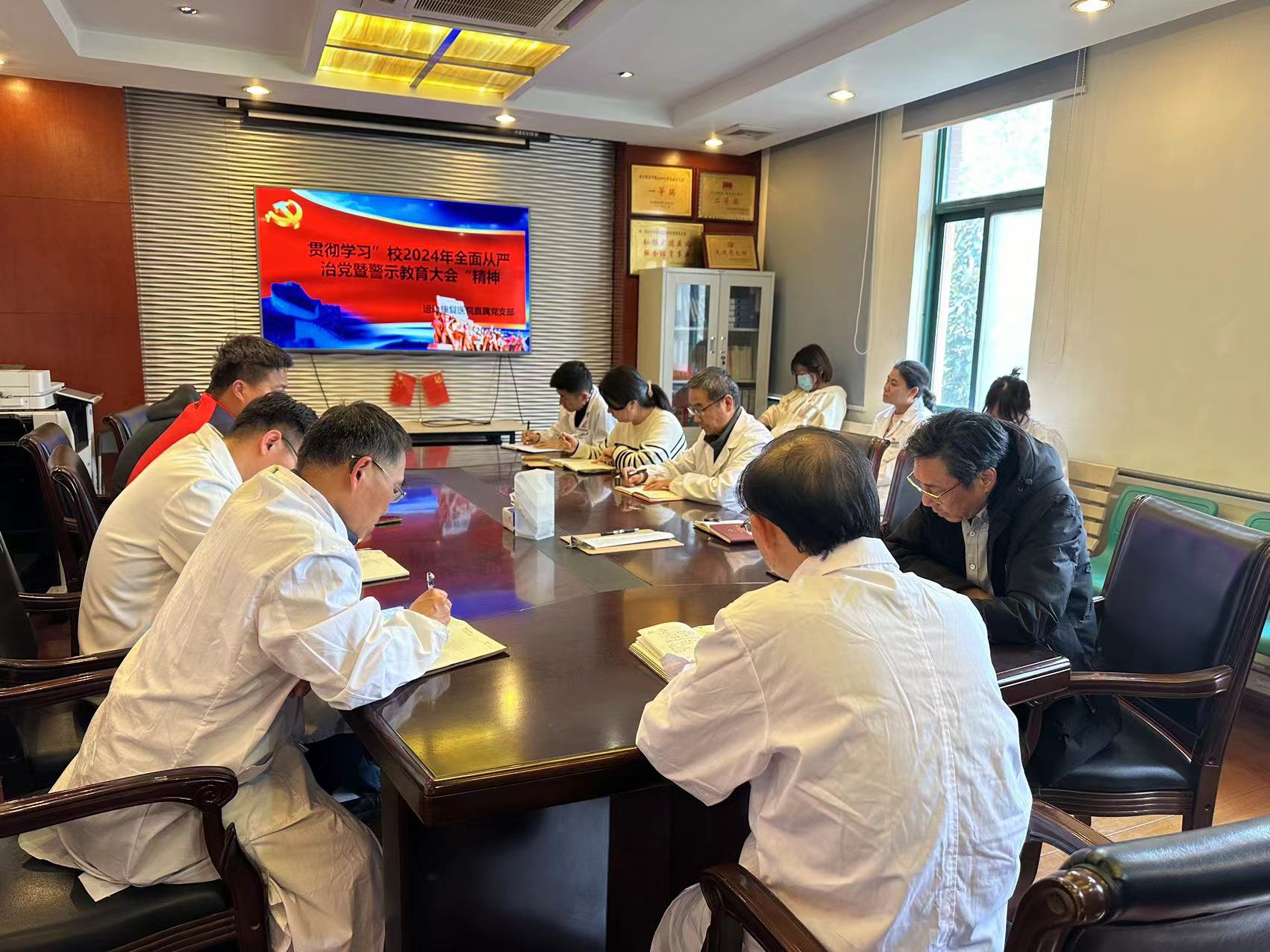 3月19日下午,运动康复医院召开专题会议,传达校2024年全面从严治党暨警示教育大会精神。全体工作人员参加,运动康复医院直属党支部书记、院长王家祥主持会议。