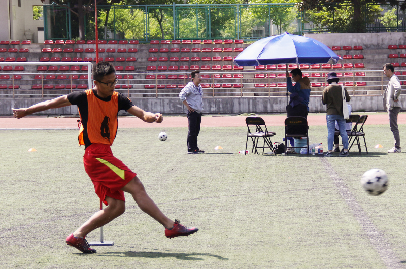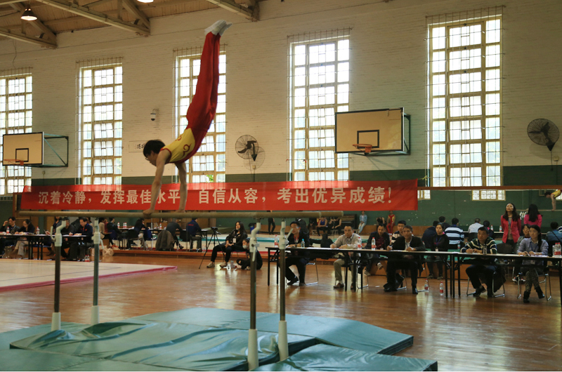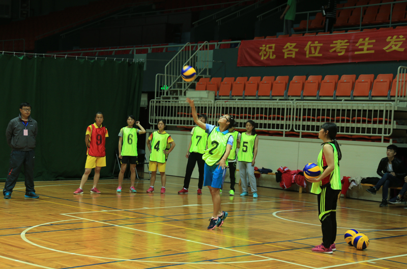 4月19日是江苏省体育类专业统一考试的第四天,分别进行体操、排球和足球的专项考试。其中体操和排球考试分别在我院健美操馆和体育馆举行,足球考试在南京农业大学足球场举行。