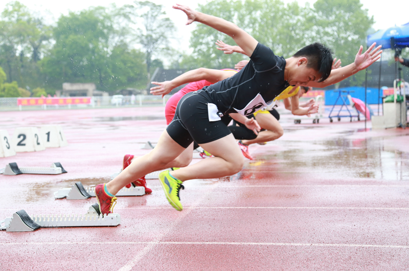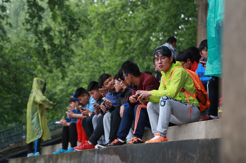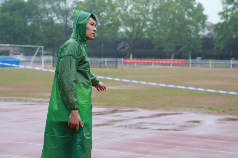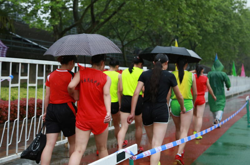 考生雨中起跑