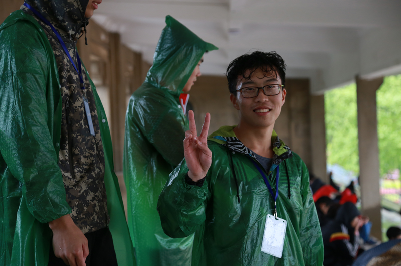宣传组人员雨中拍照
