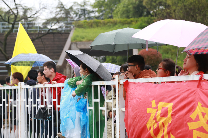 冒雨等待的亲友团