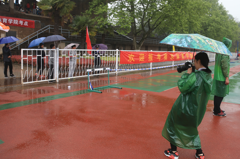 4月16日,2016年江苏省体育类专业统一考试我院考点正式开考。当天断断续续地下着雨,有时雨还很大,操场上低洼处积满了雨水。不利的天气给考试带来了很大麻烦。但院考务工作领导有力,组织有效,准备充分,纪律严明;考务人员坚守岗位,使考试工作按计划有条不紊地进行,与考生一起圆满完成了当天考试任务,受到考生和家长好评。工作人员还准备了暖暖的免费姜汤,为考生和家长祛除天气带来的寒意。让我们用镜头回顾那些难忘的时刻吧。