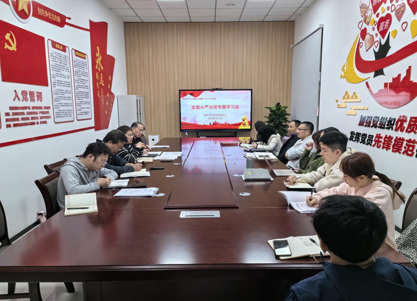 4月2日下午,武术与艺术学院党总支书记叶瑛主持召开学院理论学习中心组(扩大)全面从严治党专题学习会。会议集中观看了警示教育片,学习了习近平总书记在二十届中央纪委三次全会上发表的重要讲话精神、习近平总书记关于全面从严治党的重要论述,传达学习了PA视讯2024年全面从严治党暨警示教育大会会议精神及《中共PA视讯集团入口委员会2024年落实全面从严治党主体责任工作计划》等,并就学院贯彻落实全面从严治党工作进行了部署。学院理论学习中心组全体成员、各支部委员、系副主任参加会议。