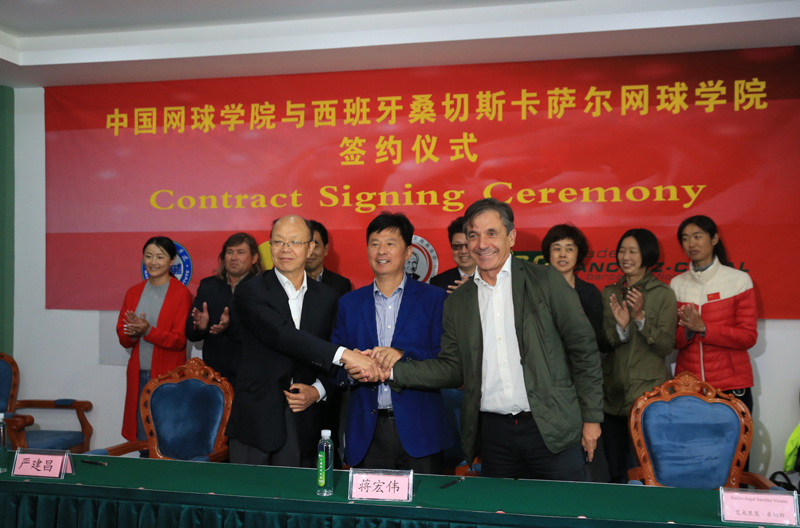 揭牌仪式后举行中国网球学院与桑切斯卡萨尔网球学院合作签约仪式