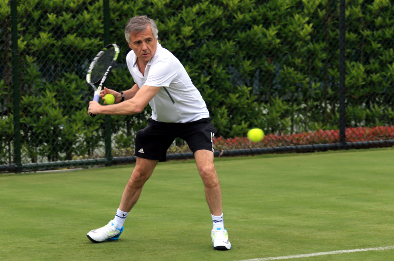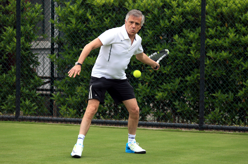 在院期间,“小萨”视察了我院的中国网球学院,听取了我院副院长、中国网球学院院长蒋宏伟的介绍,最后,还饶有兴致地在我院中国网球学院的草地球场打起了网球。