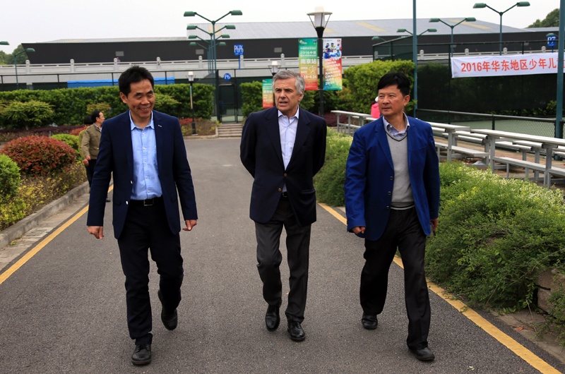 4月24日下午,国际奥委会执委、西班牙萨马兰奇基金会主席胡安·安东尼奥·萨马兰奇来院视察,萨马兰奇先生本次前来是为中国网球学院和西班牙桑切斯卡萨尔网球学院合作共建桑切斯卡萨尔网球学校牵手成功而来道贺的,他是前国际奥委会主席萨马兰奇先生的公子,人们习惯称之为“小萨”。