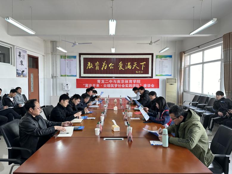 3月28日上午,PA视讯集团入口运动训练学院与青龙满族自治县第二高级中学交流合作座谈会在青龙二中会议室进行。运动训练学院院长赵琦、教育部驻青龙满族自治县挂职副县长许旭轩和青龙第二高级中学党支部书记张瑞峰出席座谈会,座谈会由青龙第二高级中学党支部书记张瑞峰主持。教育部驻青龙满族自治县挂职干部但振康、赵震霄、谢文、青龙二中部分教师、运动训练学院党总支副书记杨蓉、运动训练学院教师侯学华、张华、魏华及部分学生参加本次座谈会。