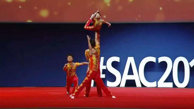 作为新科世锦赛冠军,我院技巧男子四人组受邀参加国际体育大会展演,向全世界展示了技巧项目的魅力,展示了中国技巧人的飒爽英姿,为推广技巧项目做出了贡献。