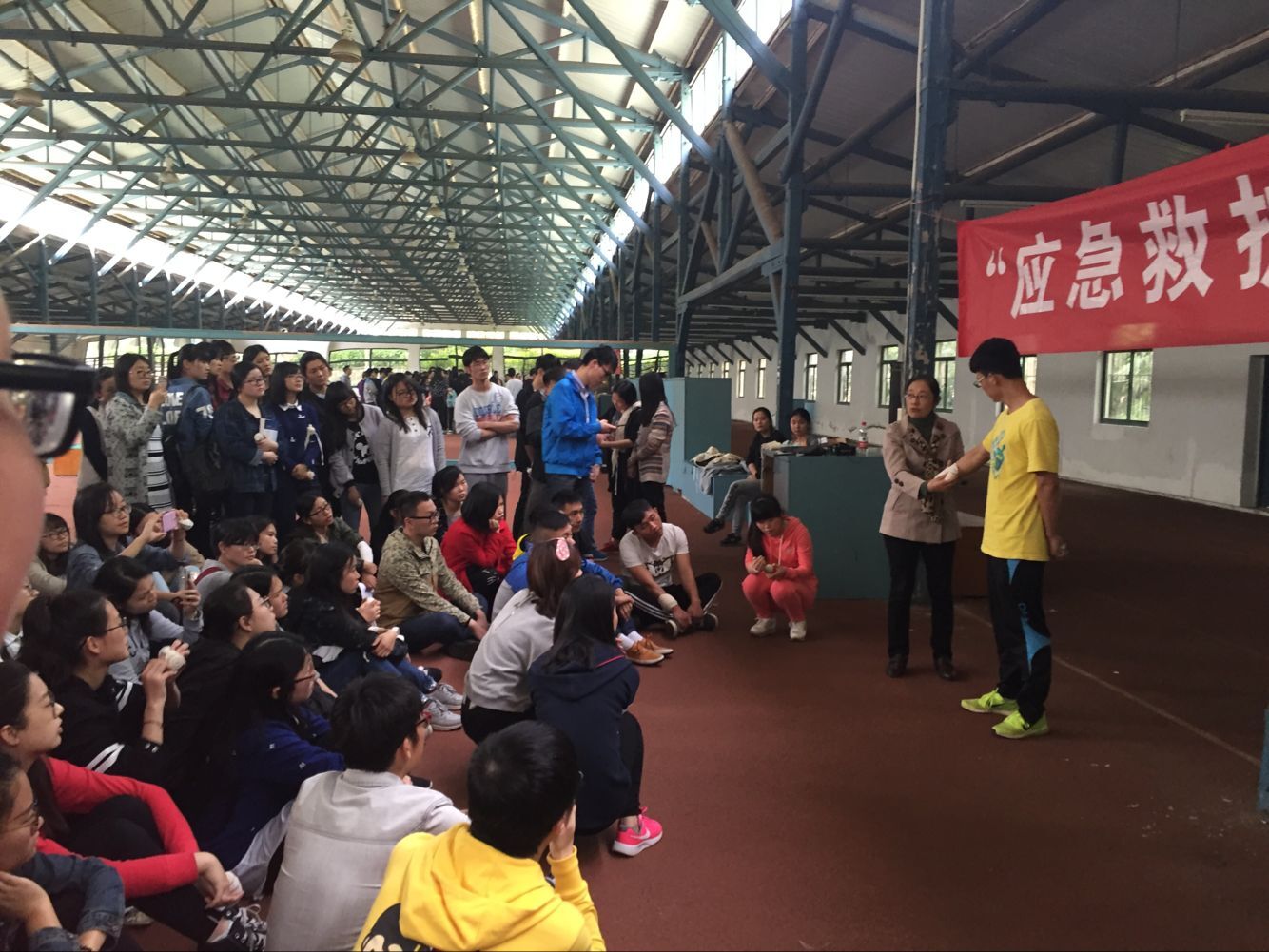 4月28日中午12点,“应急与救护”社团(简称“急救”社)第二次活动暨“现场包扎技术”培训在校田径武术馆举行。活动邀请运动健康科学系副主任马林教授主讲包扎知识与技术,社团指导老师喻菊和社团全体成员参与活动。