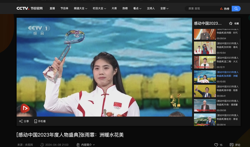 【中央电视台】[感动中国2023年度人物盛典] 张雨霏:洲暖水花美