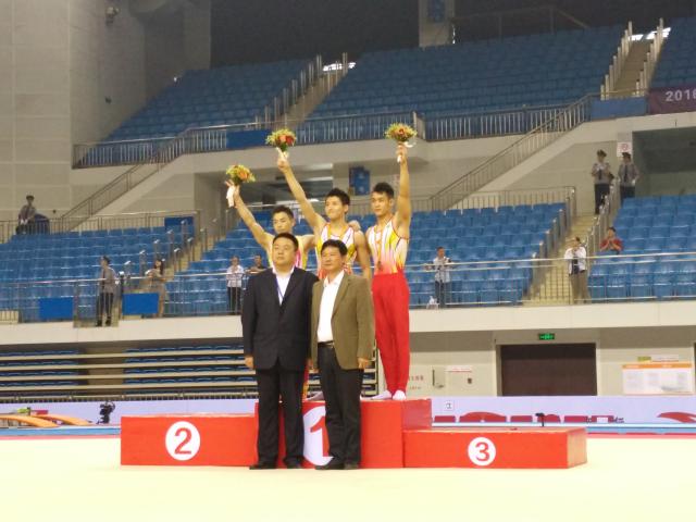 2016年全国体操锦标赛暨里约奥运会选拔赛于5月11日-15日在安徽合肥举行。我院体操队小将翁浩以16.2分的成绩,超第二名0.9分的绝对优势,夺得男子鞍马金牌,尤浩摘得吊环银牌,男子团体夺得铜牌。