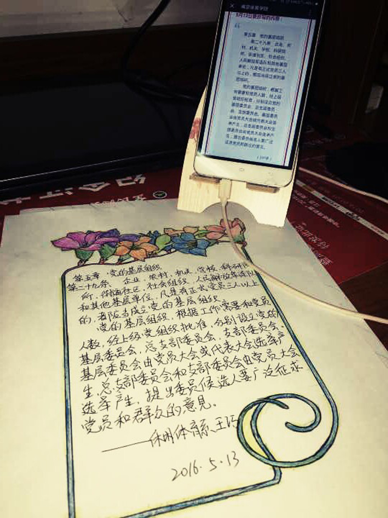 5月13日晚,《人民日报》旗下微信公众号“学习小组”发布了我院手抄党章专场,文章标题为《【手抄党章100天】第74天:来看奥运冠军抄的党章!》。截至5月16日9:00,该文阅读量超过3万次,点赞超过100次。