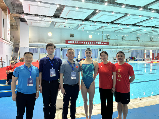 4月8日,国家花游队2024年巴黎奥运会选拔赛(第二阶段)在国家体育总局训练局花游馆举行。党委常委、副校长刘健带领游泳学院院长王伟新、花游队领队叶雷雷和花游队一线主教练王芳赴北京现场观摩选拔赛并看望慰问PA视讯运动员、复合型团队人员。