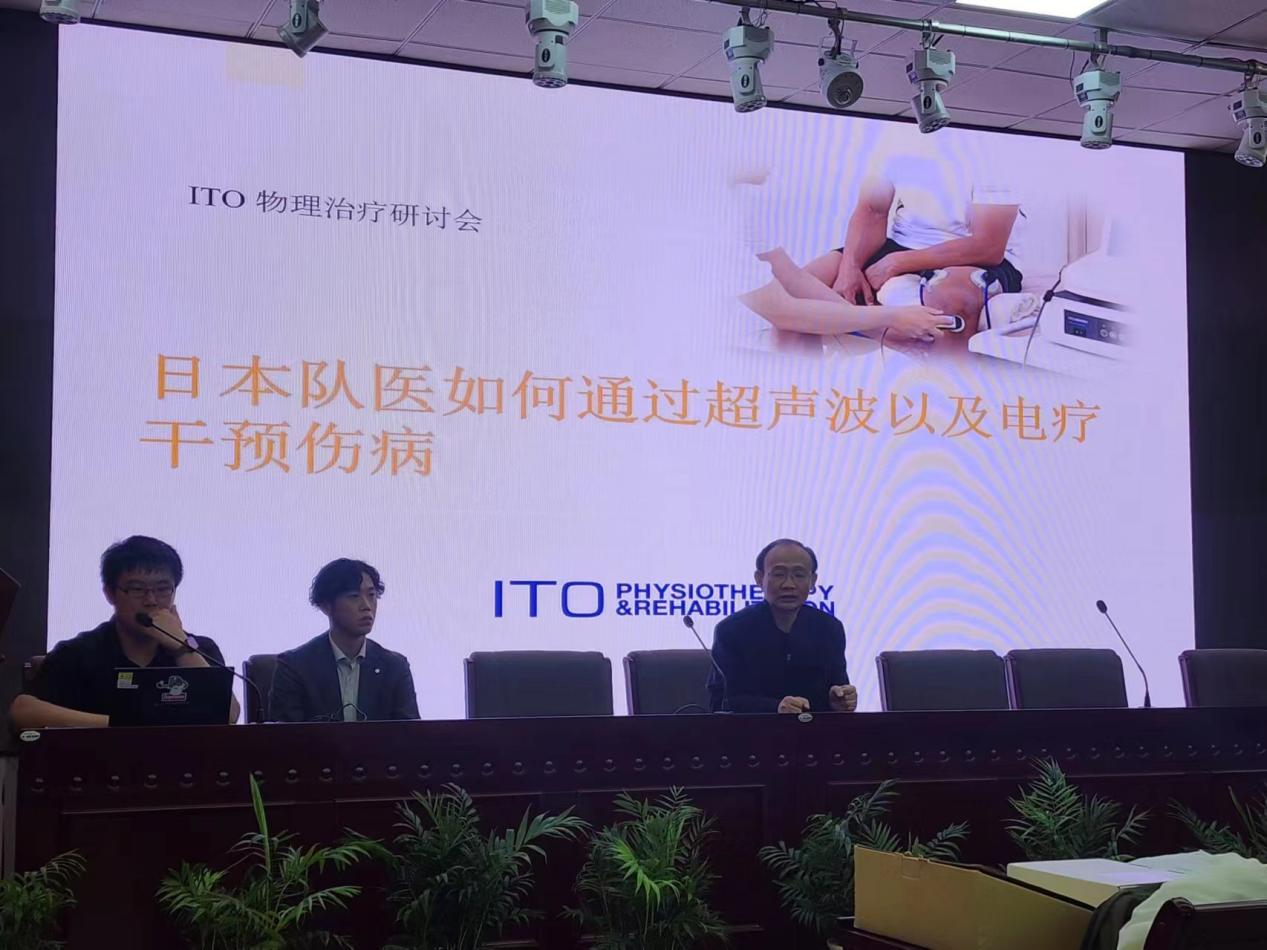 4月11日下午2点,运动康复医院在学校工会多功能厅举行了一场关于物理治疗在运动队中应用的研讨会,运动康复医院院长王家祥主持,全体队医、实习生参加,日本的运动队队医小谷野悠汰受邀参加此次研讨会。小谷野悠汰曾担任过许多著名的体育团队及个人的队医,包括日本职业足球(德岛旋涡队 Tokushima Vortis)、女子体操选手(杉原爱子)、美国职业棒球大联盟球员(吉田正直)、日本职业棒球(阪神老虎队)、日本职业篮球队。