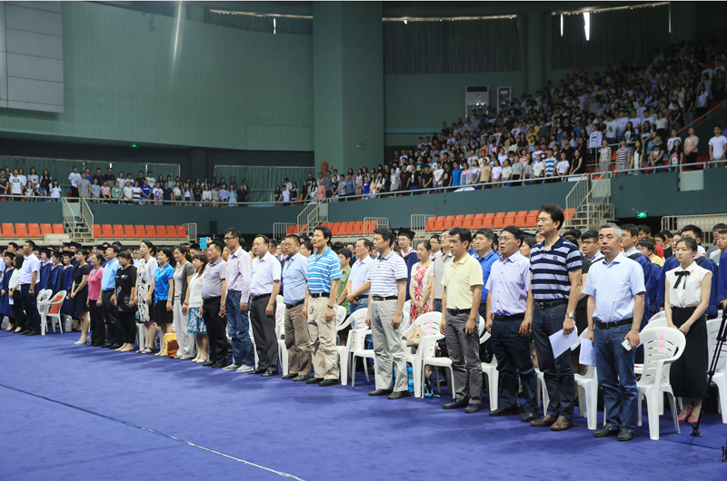 6月16日上午,我院2016届毕业典礼暨学位授予仪式在体育馆隆重举行。院党委书记陈国祥,院长杨国庆,党委副书记、副院长汤岩,副院长史国生、副院长蒋宏伟,副院长金松,副院长肖爱华,总会计师黄步龙以及院各单位、机关各部门负责人和教职员工代表、应届毕业生、在校生近3000人出席了仪式。