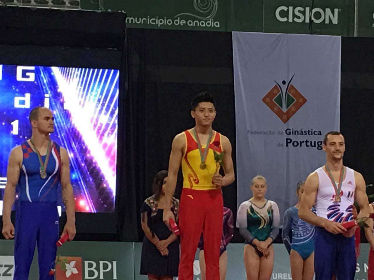 2016年体操世界杯赛葡萄牙站的比赛于6月20日-26日在葡萄牙安纳迪亚举行。我院体操队小将翁浩以16.1分勇夺鞍马冠军,克罗地亚和法国选手分获亚军和季军。