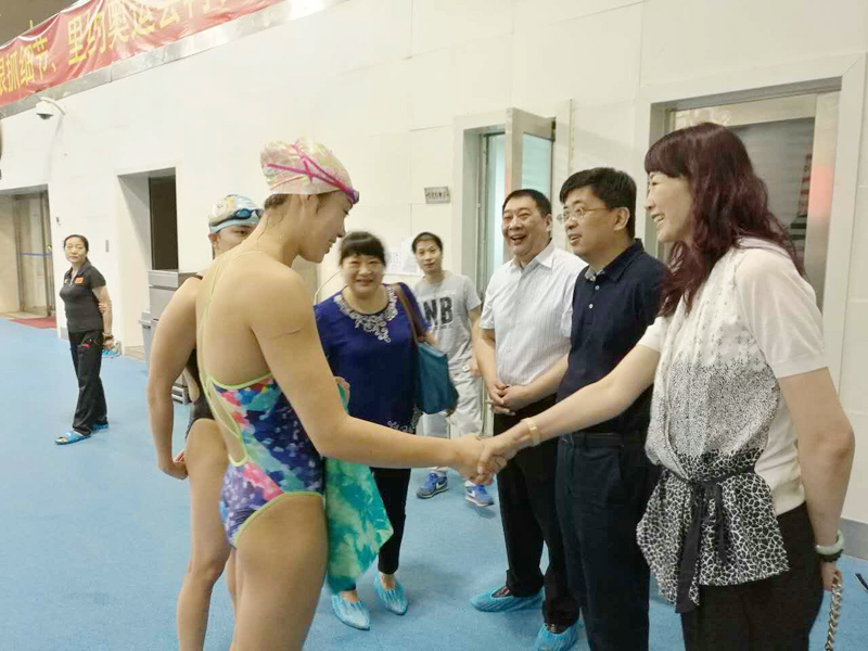 抓住当前备战奥运会我院健儿相对集中的时机,6月23日院长杨国庆、副院长肖爱华一行专程赴广州看望在此备战的陈若琳。6月30日,省体育局副巡视员陈柏、我院院长杨国庆、我院副院长肖爱华等领导赴北京、天津看望我院已入选奥运名单并即将出征的游泳、击剑、花游运动员和教练员。