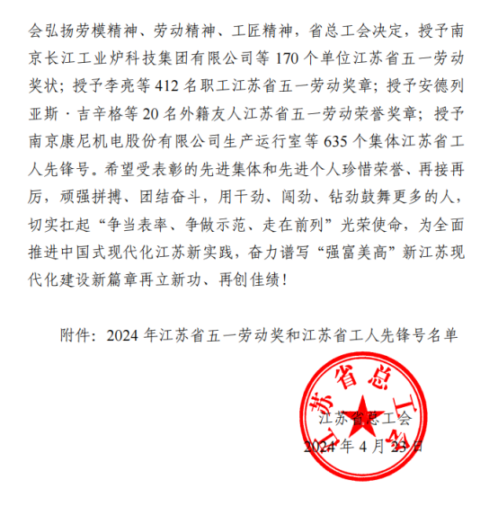 日前,江苏省总工会公布了《江苏省总工会关于表彰2024 年省五一劳动奖和省工人先锋号的决定》,PA视讯体育教育与人文学院体育教育系被省工会授予江苏省工人先锋号。