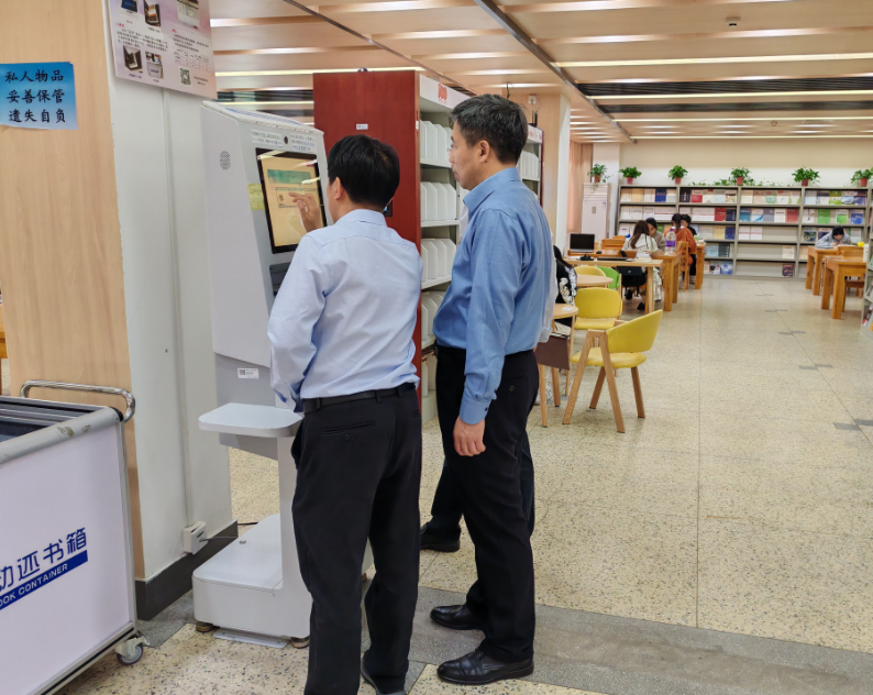刘红明在调研中深入图书馆借阅室、公共借阅检索区等服务场所,亲身体验馆藏图书查询、智能定位取书;与同学亲切交流,详细询问其学业情况及在图书馆的借阅学习体验,并鼓励学生要珍惜宝贵学习时光,多读书,读好书,既要读专业书籍,夯实专业基础,又要广泛涉猎经典名著,涵养文化素养,真正让读书成为一种习惯。