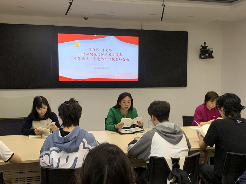 为学习贯彻习近平总书记关于党纪学习教育的重要讲话和重要指示批示精神、传达校党委开展党纪学习教育工作会议精神、贯彻落实《关于在全校党员干部中开展党纪学习教育的实施方案》的通知要求,近日运动健康学院学生党支部以线上线下相结合的方式举办“青廉课堂”暨党纪学习教育动员会。会议由支部书记阚妮妮主持。