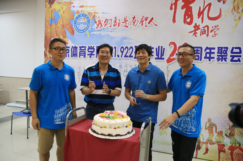 财务处处长、原922班班主任陆玉林,民族体育与表演系党总支副书记赵琦、原921班班主任赵琦推出毕业20周年纪念蛋糕