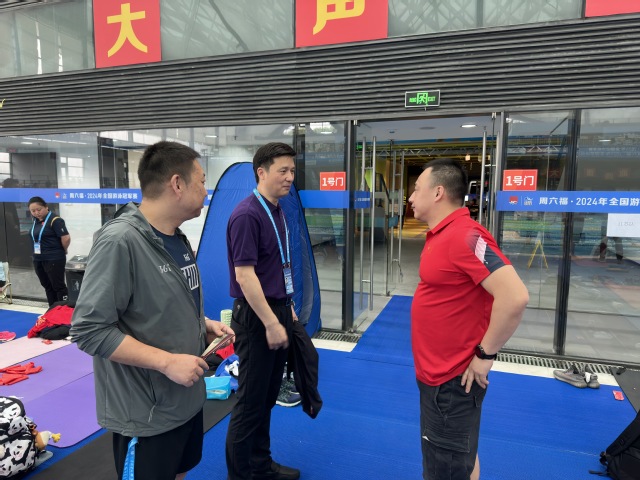 本次比赛是2024年度游泳项目全国最高级别赛事,是继春季锦标赛后的又一次大练兵。比赛期间,游泳学院院长王伟新到赛场观看比赛,看望慰问在国家队训练的运动员张雨霏、杨雯文、董志豪,并与主带教练亲切交流本次比赛的备战情况。