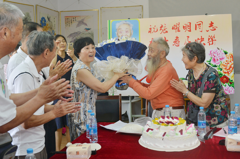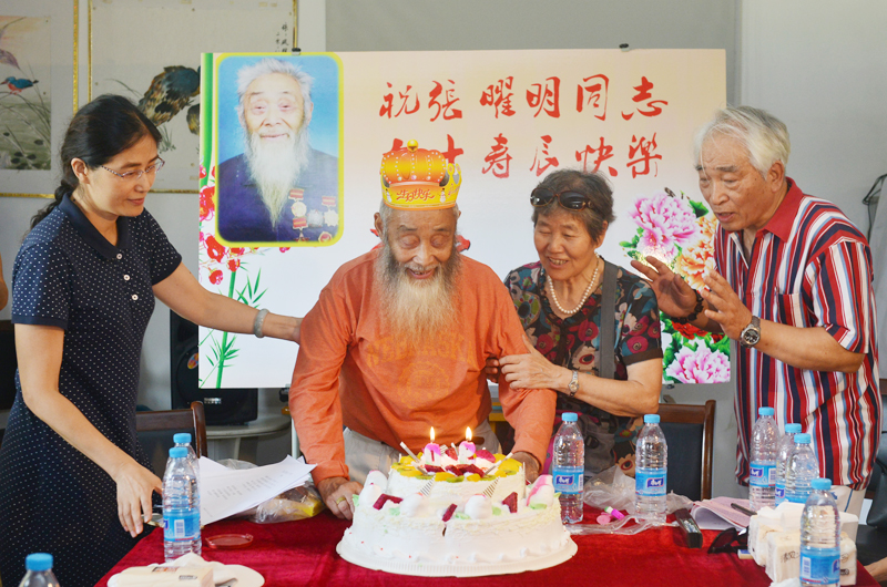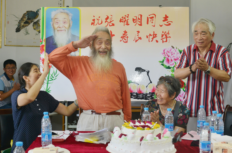 张曜明老寿星向大家敬礼