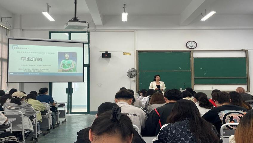 余霞从仪容、仪表、仪态三方面讲授了健身俱乐部从业人员职业形象这一章节。本节课重难点突出、贴近实际、图文并茂、形象生动。授课教师仪态端庄、精神饱满,能够运用学习通等现代信息手段辅助教学、融入课程思政内容,课堂进度把控得当、与学生互动良好。