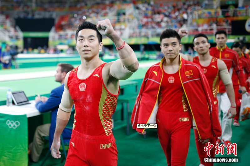 中国体操男团里约摘铜,右二为我院运动员尤浩