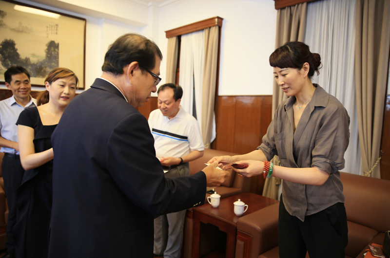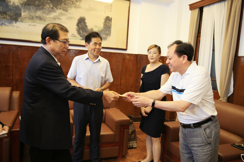 Kampol Ruchiwit博士与肖爱华副院长交换名片